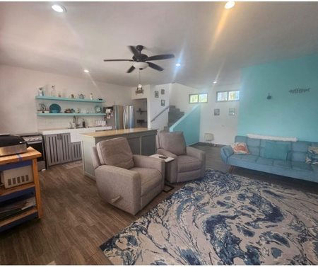 *La sala y la cocina están recién pintadas, incluyendo los gabinetes de la cocina y el baño, para que sean luminosas y acogedoras.