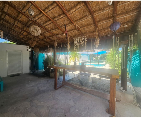 *Hermoso patio trasero con palapa y bar de parota a medida, 4 bancos y 3 mecedoras.