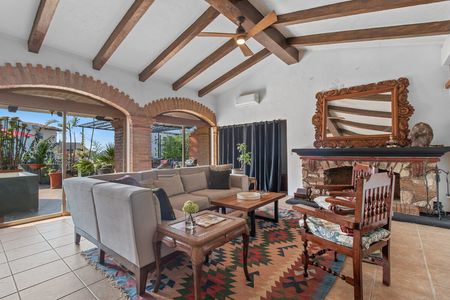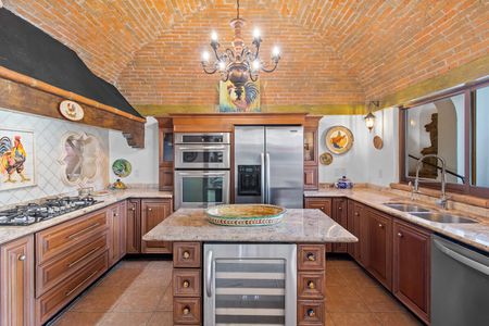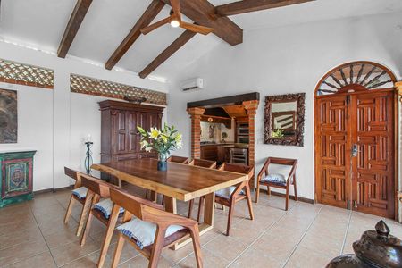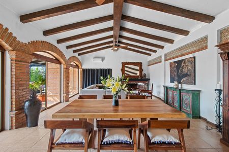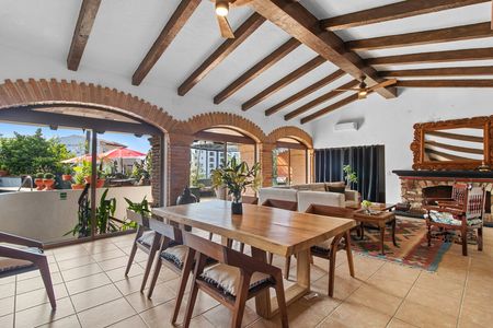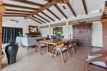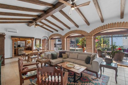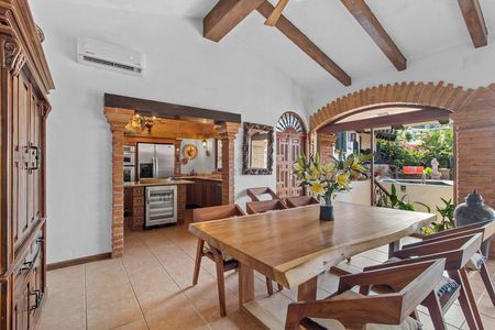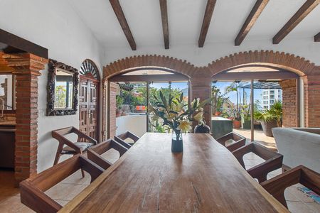 This stunning home has the charm of traditional Mexican architecture throughout and is only steps away from Zona Romantica! From the moment you enter the dining room with the beamed ceilings and striking brick archway windows to the primary shower/tub with a cupula overhead, you will soon learn how unique this home is. Boveda ceilings grace the kitchen and two bedrooms.Two separate walkways lead you to the 5 bedrooms and the upper terrace, offering views of the city and ocean from both levels. The outdoor spaces are equally impressive, with a secluded garden area for relaxation, pets, including a seating area off the living room by private pool - All perfect for entertaining!