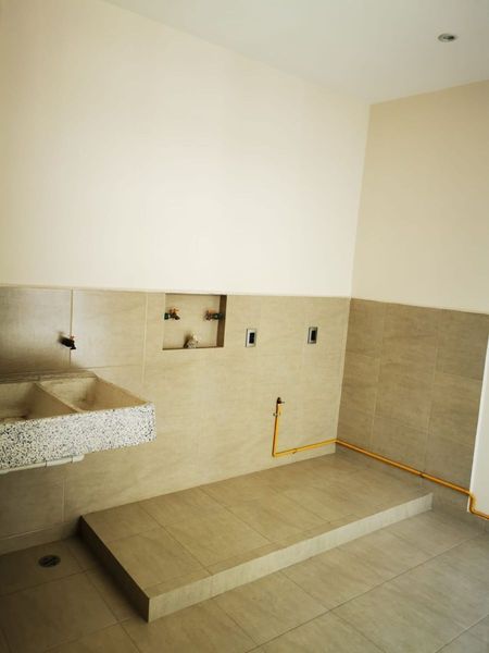 Vestíbulo, tinacos, calentadores, tanque estacionario y preparaciones para recibir asador y techumbre.