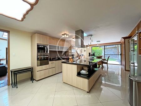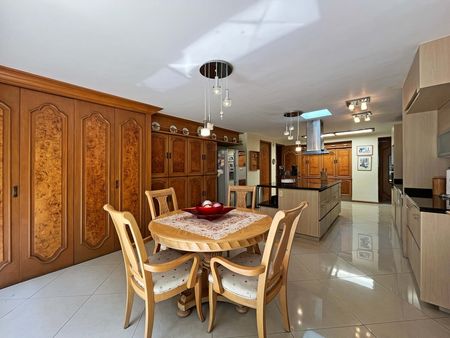 - Cocina equipada con cubierta de cuarzo y área de antecomedor con salida a terraza y al jardín.