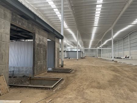 Su construcción moderna ocupa 4,344 metros cuadrados, asentada sobre un terreno de 10,000 metros cuadrados aprox. Destaca por un diseño eficiente con características que incluyen 6 andenes para trailes, rapas, un área de maniobras extensa y techos de lámina metálica, con una altura de 11 m, que facilitan cualquier actividad logística.