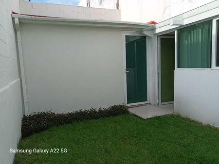 La PB cuenta con estancia, área que puede servir como sala de TV, estudio, medio baño, cocina en U muy funcional, con barra, alacena, pequeño jardín trasero, área de lavado, bodega. En el frento tiene garage para 3 autos. Los muros tienen terminados tipo paladium que le dan elegancia y los techos cuentan con plafón y luz indirecta.