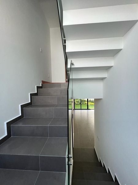 La casa cuenta en planta baja con sala, comedor, cocina abierta con cubierta de granito y barra de servicio, medio baño de visitas, jardín, patio de lavado y cuarto de servicio con baño completo y 1 bodega en el sotano de estacionamiento. En el primer nivel cuenta con una sala de tv, recámara principal con gran closet y baño completo con 2 ovalines, en el segundo nivel cuenta con 2 recámaras con closet y un baño completo.