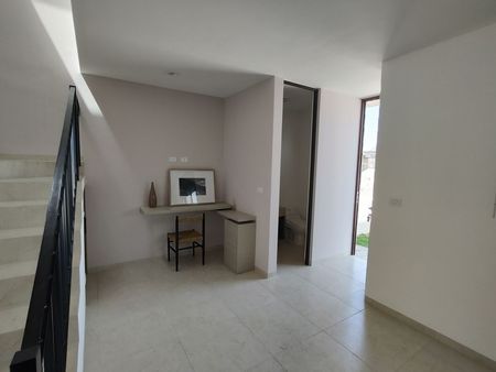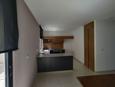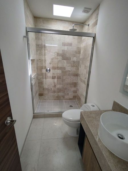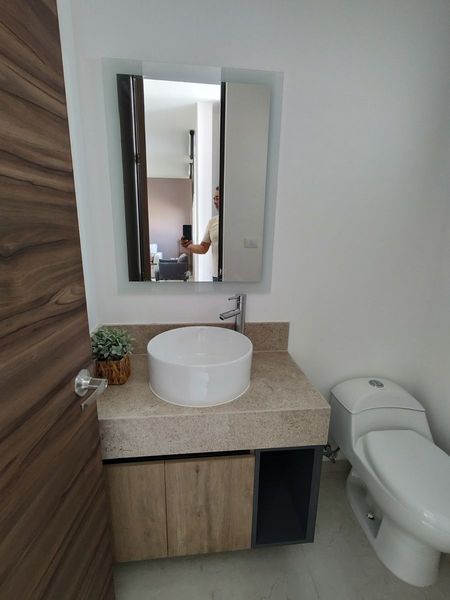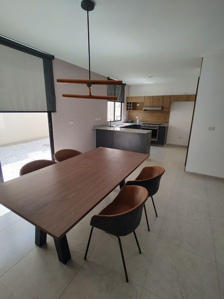 En planta baja area de Sala Comedor y cocina integral con barra con cubierta de granito y Alacena , ademas de un area que puede ser adaptada como Bar, home office, sala de tv , medio baño de visitas, amplios ventanales de acceso a patio trasero, area de lavado, estacionamiento para dos autos.