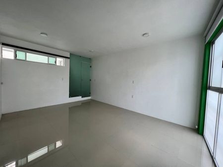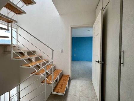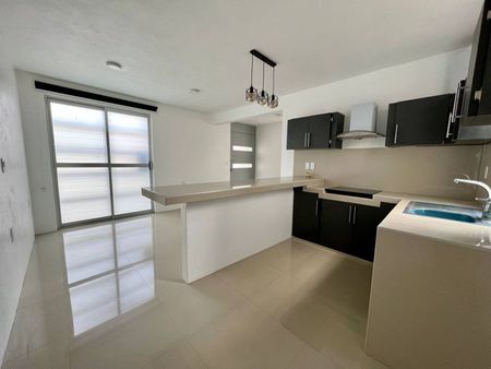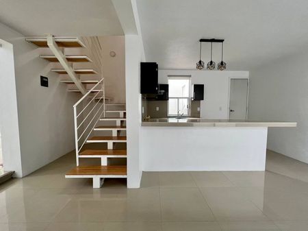 Cuenta con 3 recámaras, 3 baños y 2 cocinas (1 en planta baja, otra en área de recámara principal), cocina integral con parrilla y campana extractora de cocina, sala de doble altura, terraza con baño completo. Un cuarto de servicio en área de azotea.