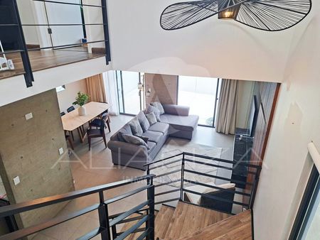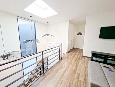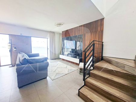 En el segundo nivel, encontrarás una sala de televisión, recámara principal con baño completo y walkin-clóset, además de dos recámaras secundarias y un baño completo adicional. Las tres recámaras amuebladas con cama y mesitas de noche.