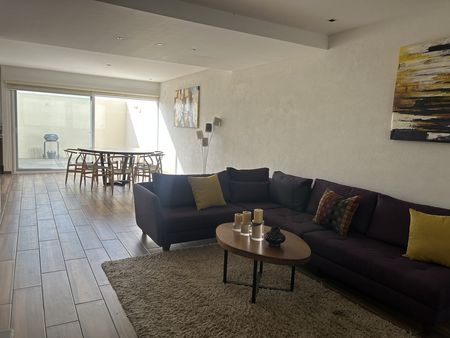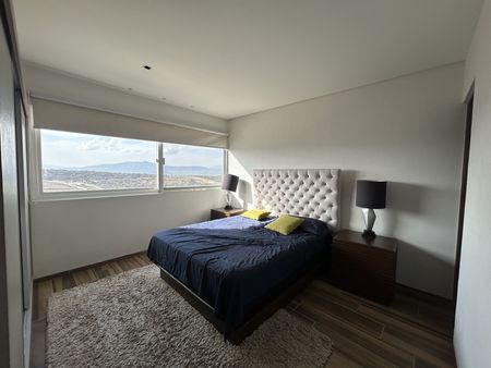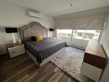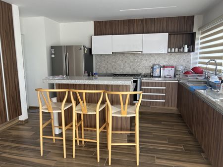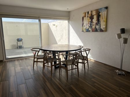 Casa en Renta completamente Amueblada, cuenta con doble anillo de seguridad, amenidades como, alberca, juegos infantiles, asador, completamente amueblado y en excelente ubicación. La renta incluye mantenimiento, agua luz e internet, el gas es por cuenta del inquilino ya que es gas estacionario. Tiene mosquiteros y persianas, blackout en recámaras, 2 terrazas con vista al valle, roof garden como sala de TV y oficina, tiene baño completo.