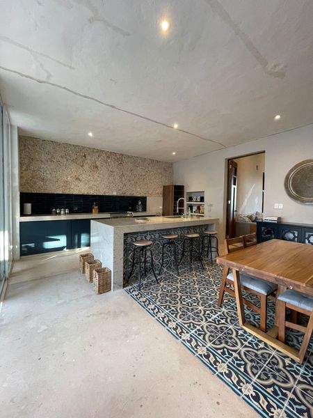 Esta casa te ofrece diferentes espacios independientes y escenarios al igual, por un lado, colonial como es la casa principal y por el otro contemporáneo como el loft y recámaras adicionales que se construyeron en la parte trasera de la casa y que aun hay oportunidad de hacer otra recámara si así se requiriera. Los bellos pisos de pasta coloridos, detalles y acabados hacen un ambiente muy agradable y fresco.