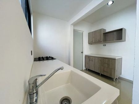 Cocina equipada con tarja y parrilla, incluye carpintería inferior y superior