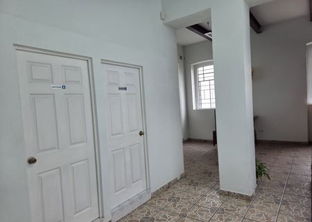 Planta alta: tres oficinas, sala de juntas y baños para hombres y mujeres.