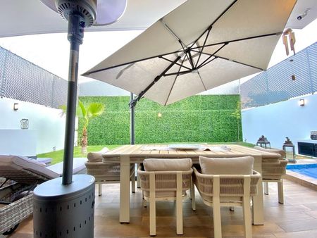 Jardín con terraza techada y jacuzzi Estacionamiento para 3 coches techado completamente
