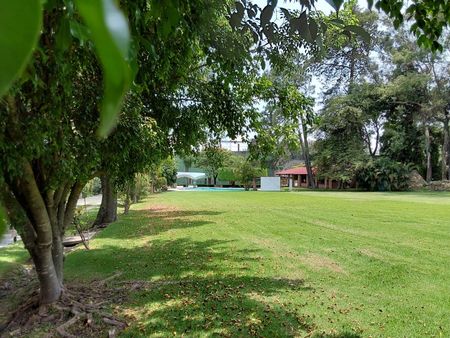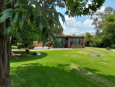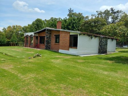Muy agradable propiedad a tan solo una hora cuarenta minutos de CDMX. Ideal para descansar y disfrutar la naturaleza con excelentes vistas. Estilo rustico, cuenta con sala-comedor, cocina, tres recámaras, estudio y terraza. Dos baños. cuarto de servicio con baño. En áreas comunes que comparten solo otras tres casas más alejada una de otra se encuentra la alberca, asador, frontón y grandes jardines tanto comunes como privado. Amueblada