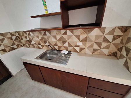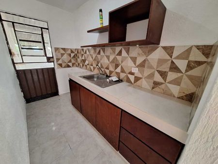 comedor corrido, cocina, dos recámaras, baño, área para Tv/lectura, terraza posterior
