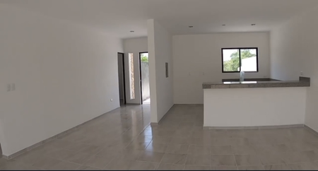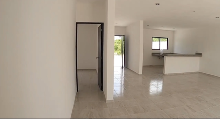 Casa de una sola planta ubicada frente a áreas verdes de una tranquila y segura privada habitacional en la zona de Conkal.