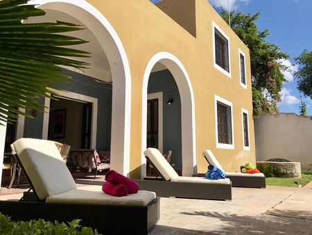 CASA DEL SIGLO XVIII CON DISEÑO DE AUTOR MERIDA CENTRO DE 4 HABITACIONES AMUEBLADA Y PANELES SOLARES Y 3 BAÑOS Y 2 MEDIOS BAÑOS ALBERCA , JACUZZY ,TERRAZA , JARDINES