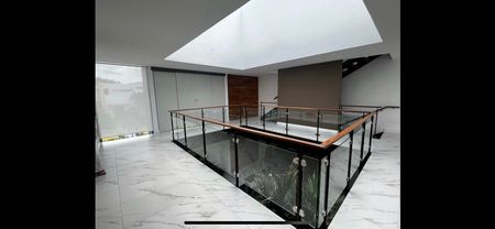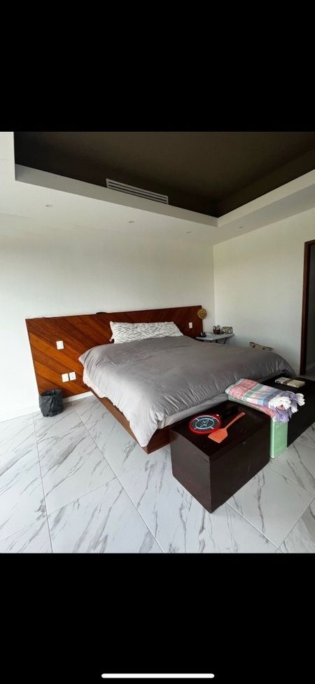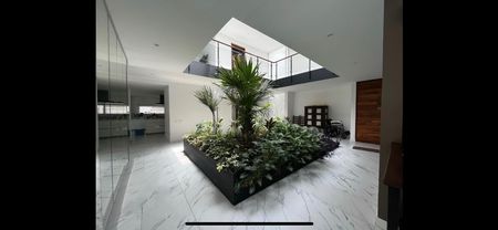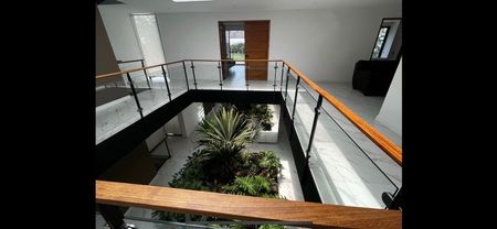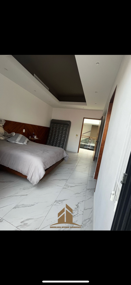 V5 habitaciones todas con baños completos, una de ellas acondicionada como gimnasio en el sótano de la casa, tres habitaciones en la planta alta, y una mas en el "roof