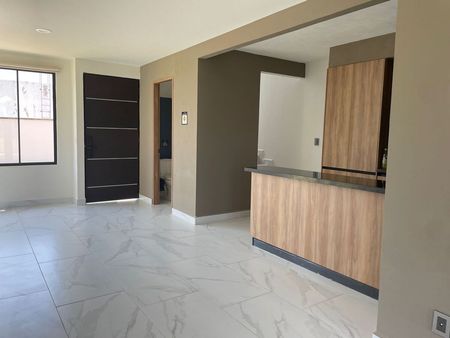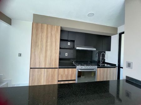 Cocina integral se integra perfectamente al área social, creando un ambiente acogedor y funcional en la planta baja, con cuarto de lavado, patio, jardín y estacionamientos.