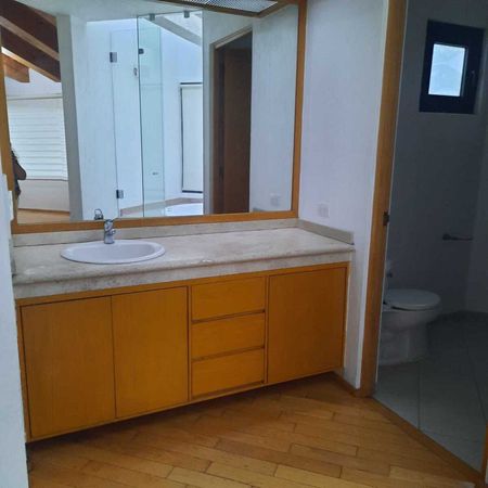 Vivir cerca de Santa Fa e Interlomas y tener a disposición excelentes centros comerciales, supermercados, buen comercio, hospitales, escuelas, universidades y al medio de esta región tan urbana. Casa en condominio residencial con 50 casas, dentro de una zona boscosa. Amplia casa confortable construida en 3 niveles que cuenta con 3 recámaras, cada una con su vestidor y baño completo, sala comedor, room family, estudio, desayunador, cocina, área de lavado con cuarto de baño completo. 3 lugares de estacionamiento y 100 m2 de jardín, un lugar agradable para disfrutar de momentos increíbles con amigos y familia.