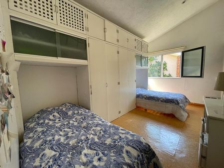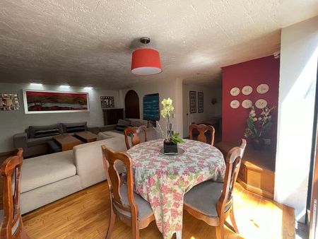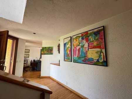 Tiene 3 recámaras con baño completo, cuarto chico tipo oficina, una sala de tv arriba.