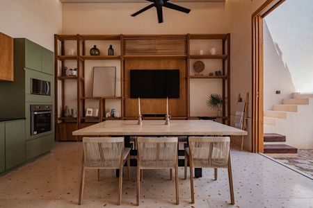 Diseñada por los reconocidos arquitectos **Arturo Bravo y Daniel Macías**, esta residencia es más que una casa: es una obra de arquitectura viva. Con la colaboración de **Kiche**, estudio especializado en diseño de interiores, se cuidó cada detalle para lograr una atmósfera auténtica y encantadora.
