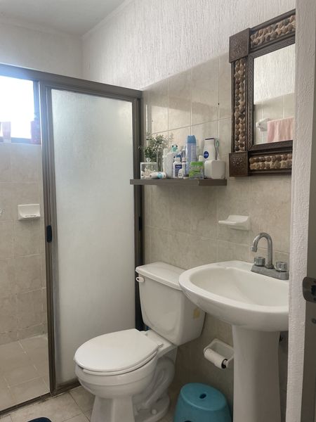 Tiene habitación en PB con baño completo y dos habitaciones mas en planta alta que comparten baño