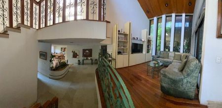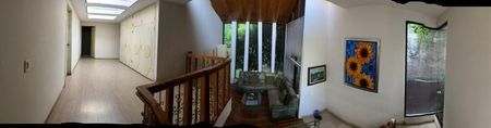 Planta baja: Hall, medio baño, closet de visitas, bodega, sala, comedor, antecomedor con salida al jardín, cocina con alacena con entrada de servicio, cuarto de lavado, 2 cuartos de servicio con baño cada uno (1 en obra negra en la parte de arriba), subes medio piso y Family con salida al jardín