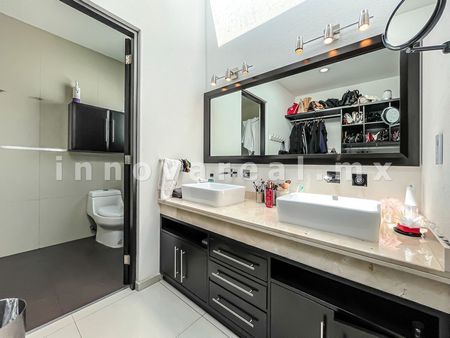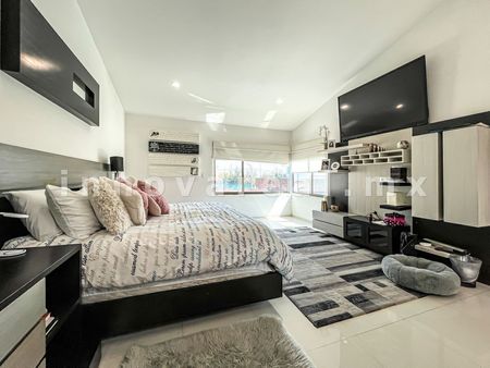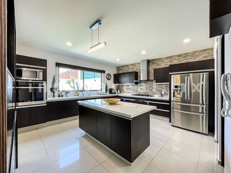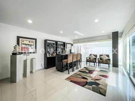 Casa moderna en Loma de Valle Escondido, cuanta con recibidor doble altura, sala, comedor, cocina equipada con isla, alacena. estudio u oficina con closet, cuarto de servicio, área de lavado, 1/2 baño de visitas, salón de usos múltiples con salida al jardín, terraza techada, jardín sala de tv, 4 recamaras con vestidor y baño, family room.