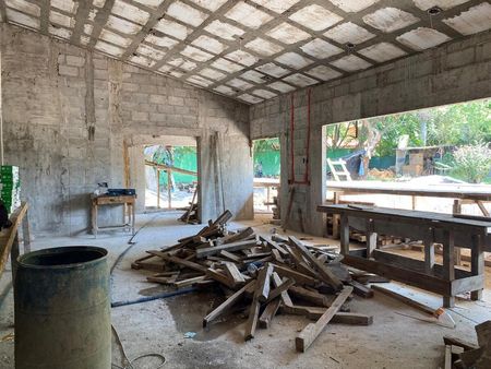 Garaje para 6 autos, área de lavado techado, cisterna de 20,000 l.