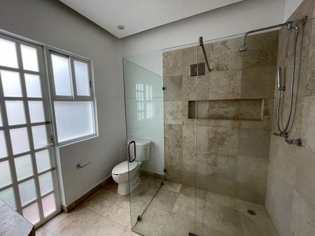 Casa sola en renta en un solo nivel. Ideal para personas mayores Techos altos. Excelente luz. Vestíbulo de entrada con medio baño de visitas. Estancia muy amplia con chimenea y salida a una terraza frontal que pudiera servir de garaje si se tienen más coches. Family amplió. desayunador .pisos de granito. Cocina con espacio para lavavajillas y cubierta de acero inoxidable. Lavanderia y medio baño para chofer