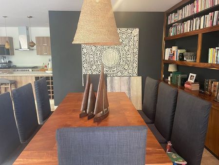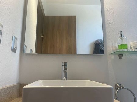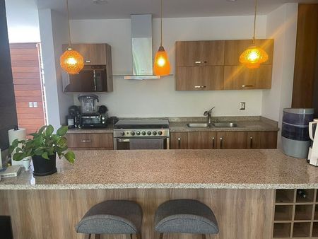 Planta baja con lobby, estancia, cocina equipada con alacena y barra de granito, sala, comedor, patio de servicio, terraza, bar, medio baño, cuarto de servicio, cochera para dos autos.
