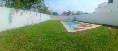 Alberca y jacuzzi con cuarto de maquinas, sistema de filtros y recirculado de agua también automatizado, 2 recamaras con aires acondicionados y uno más en la sala, estufa y calentador,
