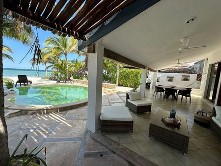 Hermosa casa frente a la playa, cuenta con 30 m de playa de Uaymitún, piscina, terraza, cocina, toda la casa esta equipada.