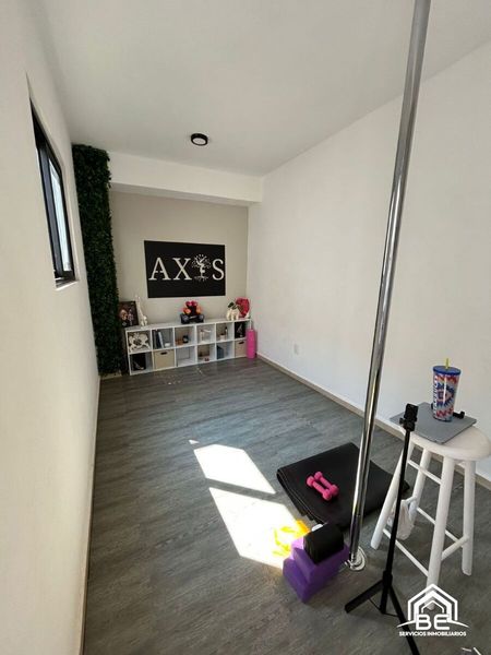 Casa en renta de 4 niveles dentro del precioso Fraccionamiento cerrado FRACTUS, con seguridad las 24 horas, en Zona Esmeralda. En PB: amplio estudio o bodega, cuarto de lavado y jardín. En el 1er piso: cocina integral, estancia para sala y comedor, así como baño de visitas. En el primer nivel se encuentran dos lugares de estacionamiento techados, la entrada a la casa y la recámara principal con walking closet, baño completo y pequeña terraza. En el 2do nivel se encuentra un family room, 2 recámaras secundarias, cada una con closet y balcón, ambas comparten baño completo. En 3er nivel: roof-garden con una vista panorámica espectacular hacia Presa Madín. Tiene cisterna de 10,000 litros. Se paga un mantenimiento de $1,800 incluidos en el precio de lista, y se permiten mascotas.