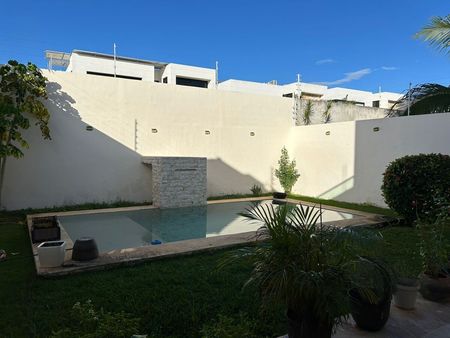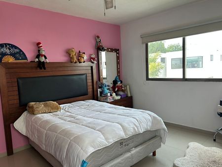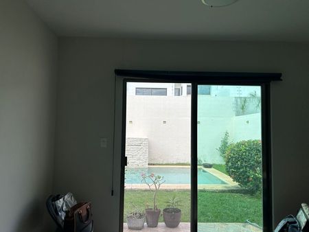 Hermosa Casa en renta , con climas, ventiladores de techo, persianas, 2 Recámaras en planta alta con baño completo y closet vestido , Recámara principal con vestidor y baño completo y balcón. Estudio. Recámara en planta baja con baño completo. Balcón trasero, sala y comedor corridos muy amplio, medio baño de visitas, terraza trasera techada con vista a la piscina con cascada y filtros, jardín, cerca eléctrica, cámaras de seguridad y alarma. Cocina equipada con granito, gavetas, alacena. (se puede rentar con estufa y refrigerador) cuarto de lavado, pasillo lateral de acceso para personal de servicio para piscina y jardín. Reja eléctrica, garage techado para 2 vehiculos. Facil acceso para el periférico, cerca de todo. Centro comercial altabrisa, hospitales y universidades. La piscina tiene filtro. Jardín sistema riego. Cámaras y alarma. Se puede rentar amueblada. Solo cambia precio