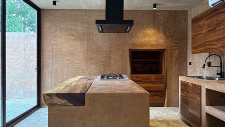 Materiales: Uso de materiales naturales como Madera Tzalam y Laja Verde