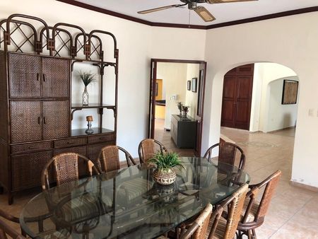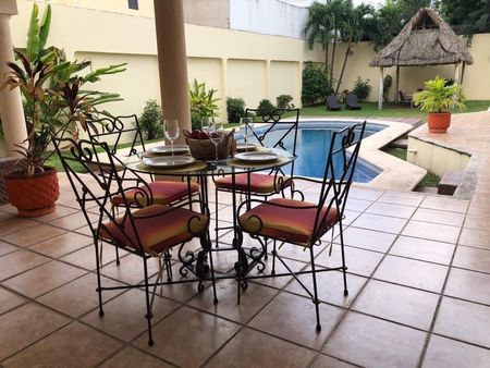Cómoda, agradable y amplia residencia, la cual cuenta con techos muy altos, alberca,aires acondicionados,en las 4 habitaciones y 14 ventiladores,que junto con su orientación propicia que sea muy fresca. La ciudad y la zona son muy seguras, y el personal de limpieza solo accede con la solicitud y autorización de los huéspedes, además de que la casa cuenta con caja digital de seguridad. Se encuentra en un lugar extraordinario, muy cerca de restaurantes, centros comerciales, etc.” EXCELENTE