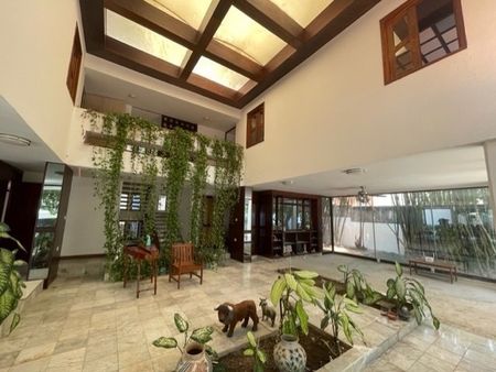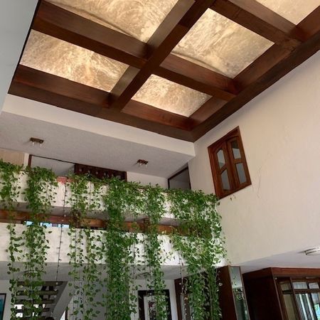 La casa cuenta con amplio estacionamiento y espacios amplios con doble altura, decorado con plantas naturale, que dan un agradable ambiente de iluminación natural.