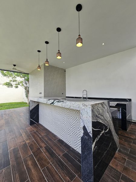 - Amplia cocina equipada con gavetas, parrilla y campana