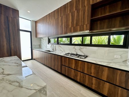 • Cocina premium (horno, estufa con 4 quemadores, gaveteros inferiores y superiores)
