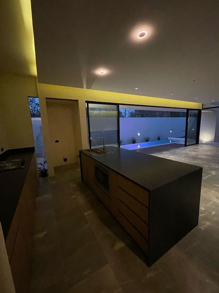 ESPEJO DE AGUA CONECTADO AL SISTEMA DE FILTRADO DE LA ALBERCA CON ILUMINACION LED.