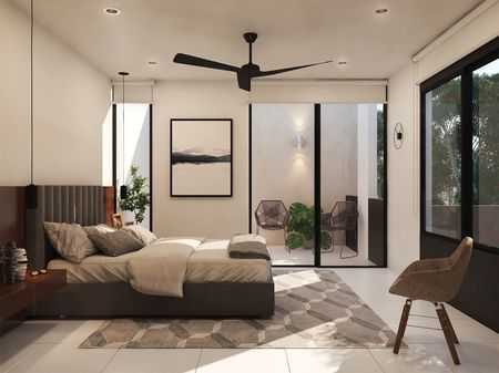 Recámara principal (3) con closet vestidor, baño propio y terraza privada.