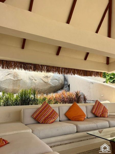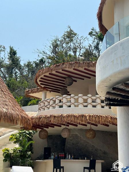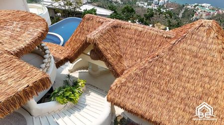 Villa en venta dentro de privada, Cascadas, con vigilancia 24 horas, construida en 3 niveles con 15 años de antigüedad, totalmente reconstruida después de Otis. Tiene en planta baja 5 recámaras con closet, en la segunda planta está el área común con sala, comedor, cocina integral y salida a una hermosa alberca infinita con vista panorámica, tiene family room. En el tercer piso está la recámara principal. Tiene estacionamiento para tres autos medianos o dos camionetas. Tiene una palapa sintética y paneles solares.