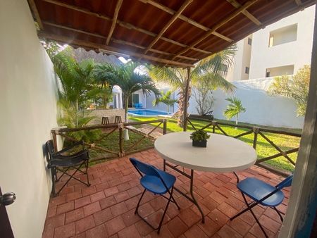 Totalmente amueblada, 2 palapas y una increíble alberca templada de 4x7m, jardín plano. 2 lugares de estacionamiento.