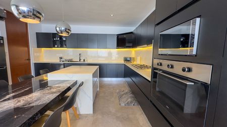 - Cocina: mesetas de cuarzo en toda la cubierta incluyendo back splash y mármol negro estelar en isla.
