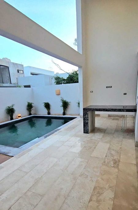 Nuestra residencia de estilo moderno y minimalista, con líneas limpias y volúmenes geométricos. Su fachada combina tonos neutros con detalles en madera y piedra, ofreciendo un contraste elegante. Amplios ventanales aportan luz natural y amplitud, mientras que su diseño de dos niveles equilibra estética y confort.