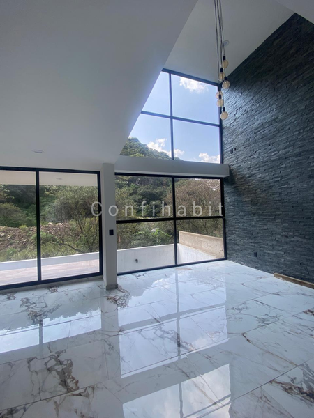 Amplia sala con doble altura, generando espacios luminosos y modernos.