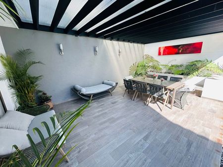 Sala y comedor con acceso a terraza techada