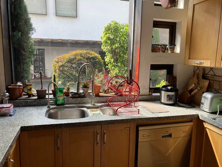 De condominio horizontal en colonia el Molino, parte baja del Cuajimalpa. Fase acceso. Pegado al jardín común. Pisos de madera. Persianas, comedor con salida a la terraza y sala separada con ventanales viendo hacia la terraza. Cocina cerrada con cubierta de granito y espacio para lavavajillas. Medio baño de visitas. Tres recámaras con baño cada una. Salita de televisión de las recámaras. Calefacción eléctrica independiente. Algunos peces con bóveda de ladrillo. Lavandería y cuarto de servicio en tercer nivel. Dos lugares estacionamiento cubiertos. Vigilancia en las 24 horas.
