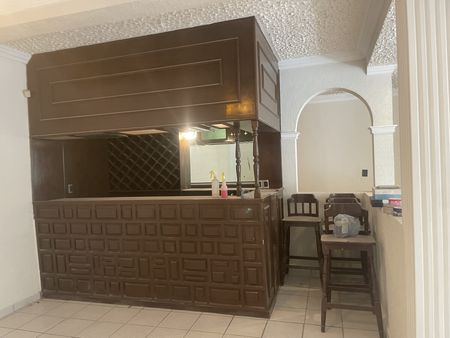 En planta baja tenemos garage para 1 auto, 2 baños completos, uno para mujeres y otro para hombres, lugar para área social cuenta con un bar de madera.